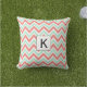 Monogram Coral Pink and Mint Green Chevron Pattern Outdoor Cushion