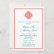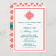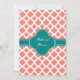 Monogram Coral Pink and Teal Quatrefoil Wedding Invitation