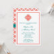 Monogrammed coral pink and teal quatrefoil pattern. Rehearsal dinner invitations.