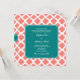 Monogram Coral Pink Quatrefoil Pattern with Teal Invitation