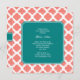 Monogrammed coral pink quatrefoil pattern with teal. Pink quatrefoil patern on white. Bridal shower invitations.