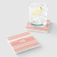 The coasters are gorgeous, a quality feel and heavy weight. They look like a precious archeological find. A rustic stone juxtaposed with a modern floral black and white print. I like the way the print goes slightly imperfect on the cut stone edges giving them a kind-of natural beauty.
