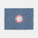 Cosy fleece blanket features blue denim print, red & white gingham check circle accent, with double framed monogram and name. Easily change text using the Template provided. Ample size for a pet, 2+ year toddler to adult. Makes a wonderful lap blanket for the game, home or in the car. See "About This Product" at side for more information and care.