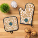 Monogram Country Style Bold Floral Pattern Yellow Oven Mitt & Pot Holder Set