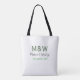 Monogram couple grey green modern romantic date si tote bag