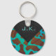 Monogram Cow Brown and Teal Print Key Ring