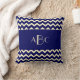 Chic throw pillow in trendy cream and navy blue colours. Modern & Bold chevron zigzag pattern in cream and navy, with matching band across the front to personalise with your monogram.