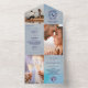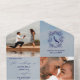 Monogram Crest 3 Photo QR Code Preppy Blue Wedding All In One Invitation
