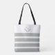 A classic elegant design with modern wide stripes, this tote bag has a monogram crest to personalise with two initials and is embellished with an olive branch laurel wreath in silver sage green watercolor hues. Use your first and last name initials, or two partner's or spouse's initials. Personalise the easy-to-use text template with your desired initials. This tote makes a nice gift that is both decorative and practical.