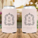 Monogram Crest Blush Pink Wedding Can Cooler