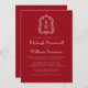 Monogram Crest Cranberry Red QR Code Wedding Invitation