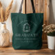 Monogram Crest Dark Green White Graduation Tote Bag