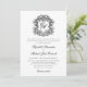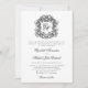 This elegant formal wedding invitation features an ornate vintage crest with monogram initials of the bride and groom, in fancy calligraphy script intertwined.
