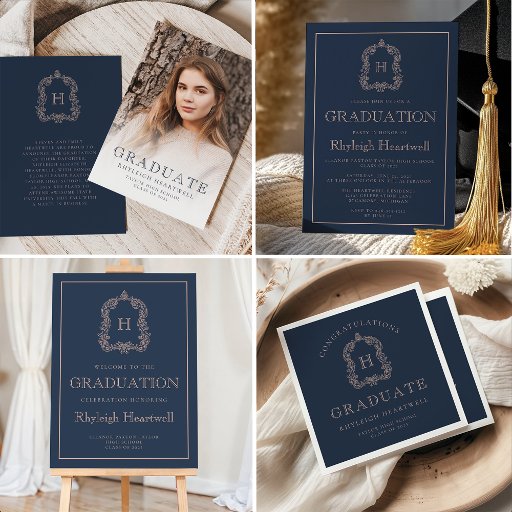 Monogram Crest Navy Rose Gold Graduation SuiteDesigned by Akhates Designs