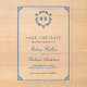 Monogram Crest Royal Blue Wedding Save the Date Acrylic Invitations