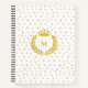 Monogram, crown, laurel and gold stars on white background Notebook.