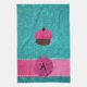 Monogram cupcake turquoise glitter tea towel