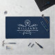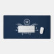 Monogram Custom Family Name White Script Desk Mats features a monogram and personalised family name in elegant white script typography on a dark blue background. Perfect gift for family and friends for birthday, Christmas, Father's Day, Mother's Day, Grandparents, wife, husband, mum, dad and more. Designed by ©Evco Studio www.zazzle.com/store/evcostudio