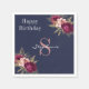 Monogram Custom Name Burgundy Pink Gold Floral Napkin on blue background for your birthday, wedding, bridal shower or any special occasion. Easy to personalise. Get yours today!