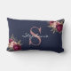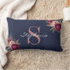 Monogram Custom Name Pink Gold Burgundy Floral Lumbar Pillow on blue background for your dorm room or new home. Easy to personalise. Get yours today!