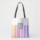 Create a monogram custom personalised stylish tote bag with a pastel colours and white stripes design. Art copyright Ann Powell all rights reserved.