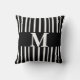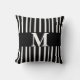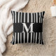 This monogram custom accent pillow has bold black and white stripes modern chic style for home decor.