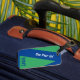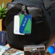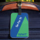 Bright green and blue colours brighten this mod-style luggage tag. Add your monogram/custom phrase to make this uniquely yours.