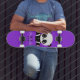 Monogram Cute Panda Personalized Purple Skateboard features a cute panda bear sitting on the floor on a purple background. Personalize with your monogram and name or delete text in text boxes for no name. Personalize by editing the text in the text box provided. Designed by ©Evco Studio www.zazzle.com/store/evcostudio