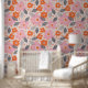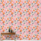 This mid-century modern pattern features pink and orange flowers.