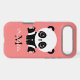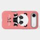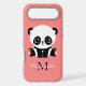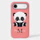 A cute panda bear sitting on the floor on a salmon background. Personalise with your monogram and name or delete text in text boxes for no name.