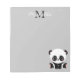 Monogram Cute Sitting Panda Personalised Silver Notepads features a cute panda bear sitting on the floor on a silver background. Personalise with your monogram and name by editing the text in the text boxes provided. Designed by ©Evco Studio www.zazzle.com/store/evcostudio