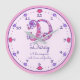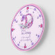 Monogram letter D hearts and flowers in pink and purple add your own name clock, currently reads Darcy A chic conqueror, rich, brave and fearless or you can personalise with your own name and name meaning or message. Cute doodle drawing design of the letter D surrounded by clock numbers and hearts. Other matching items available for this letter and other letters. If you need help with placing your own name on this product please contact me. Unique design and ink drawing by Sarah Trett www.sarahtrett.com for www.mylittleeden.com on zazzle