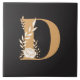 Monogram D, pretty floral pattern, gold and black with white flower.