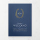 Monogram dark blue gold leaf wedding option RSVP Tri-Fold Invitation