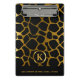 Monogram Dark Gold and Black Giraffe Pattern Mini Clipboard