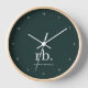 Monogram Dark Green Stylish Modern Minimalist Clock