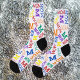 Personalised just for you, these novelty Monday Day Of The Week socks in fun rainbow colours with a custom monogram initial for the ultimate gift. These one of a kind monogram socks feature your choice of monogram letters in a bold font scattered among a pattern of MON (short for for MONDAY) in a mix of cute thin handwritten and fun silly fonts in red, orange, yellow, green, blue and purple on a white background. Personalised Monday novelty socks in colourful rainbow hues with a monogram of your choice makes a cute gift for almost any occasion. Check out my other available days for a personalised set of Days Of The Week socks for adults so you can create a full set in fun rainbow colours or mix and match colour choices. Fun for men and women, custom monogram Monday socks in fun rainbow colours are a cute choice for Father's Day, Mother's Day, Birthdays, Holidays or as a gag gift..