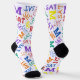 Personalised just for you, these novelty Saturday Day Of The Week socks in fun rainbow colours with a custom monogram initial for the ultimate gift. These one of a kind monogram socks feature your choice of monogram letters in a bold font scattered among a collage pattern of SAT (short for for SATURDAY) in a mix of cute thin handwritten and fun silly fonts in red, orange, yellow, green, blue and purple on a white background. Personalised Saturday novelty socks in colourful rainbow hues with a monogram of your choice makes a cute gift for almost any occasion. Check out my other available days for a personalised set of Days Of The Week socks for adults so you can create a full set in rainbow colours or mix and match colour choices. Fun for men and women, custom monogram Saturday socks in fun rainbow colours are a cute choice for Father's Day, Mother's Day, Birthdays, Holidays or as a gag gift.