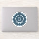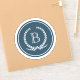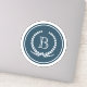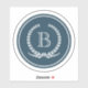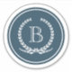 Monogram design with laurel wreath decoration in striped round shape on blue background