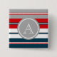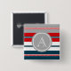 Nautical themed design with monogram decoration in round shape on blue, white, red and grey striped background