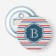 Nautical themed design with monogram decoration on blue, white, red and grey striped background