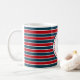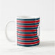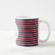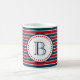 Nautical themed design with monogram decoration in round shape with stars on blue, red and white striped background