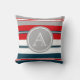 Nautical themed design with monogram decoration in round shape on blue, white, red and grey striped background