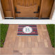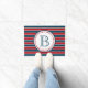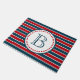 Nautical themed design with monogram decoration in round shape with stars on blue, red and white striped background