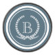 Monogram design with laurel wreath decoration in striped round shape on blue background