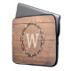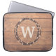 Monogram design for Christmas with wreath and snow decoration on rustic wooden background