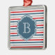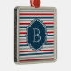 Nautical themed design with monogram decoration on blue, white, red and grey striped background
