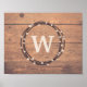 Monogram design for Christmas with wreath and snow decoration on rustic wooden background