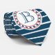 Nautical themed design with monogram decoration in round shape on blue and white striped background