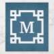 Monogram design with Greek key border decoration on grunge blue background